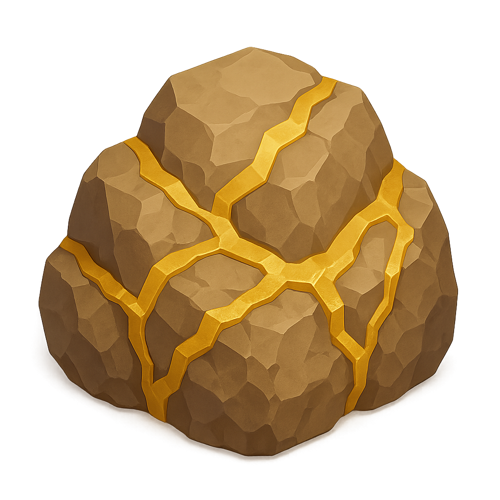 3D Gold Ore Icon with Isometric Design