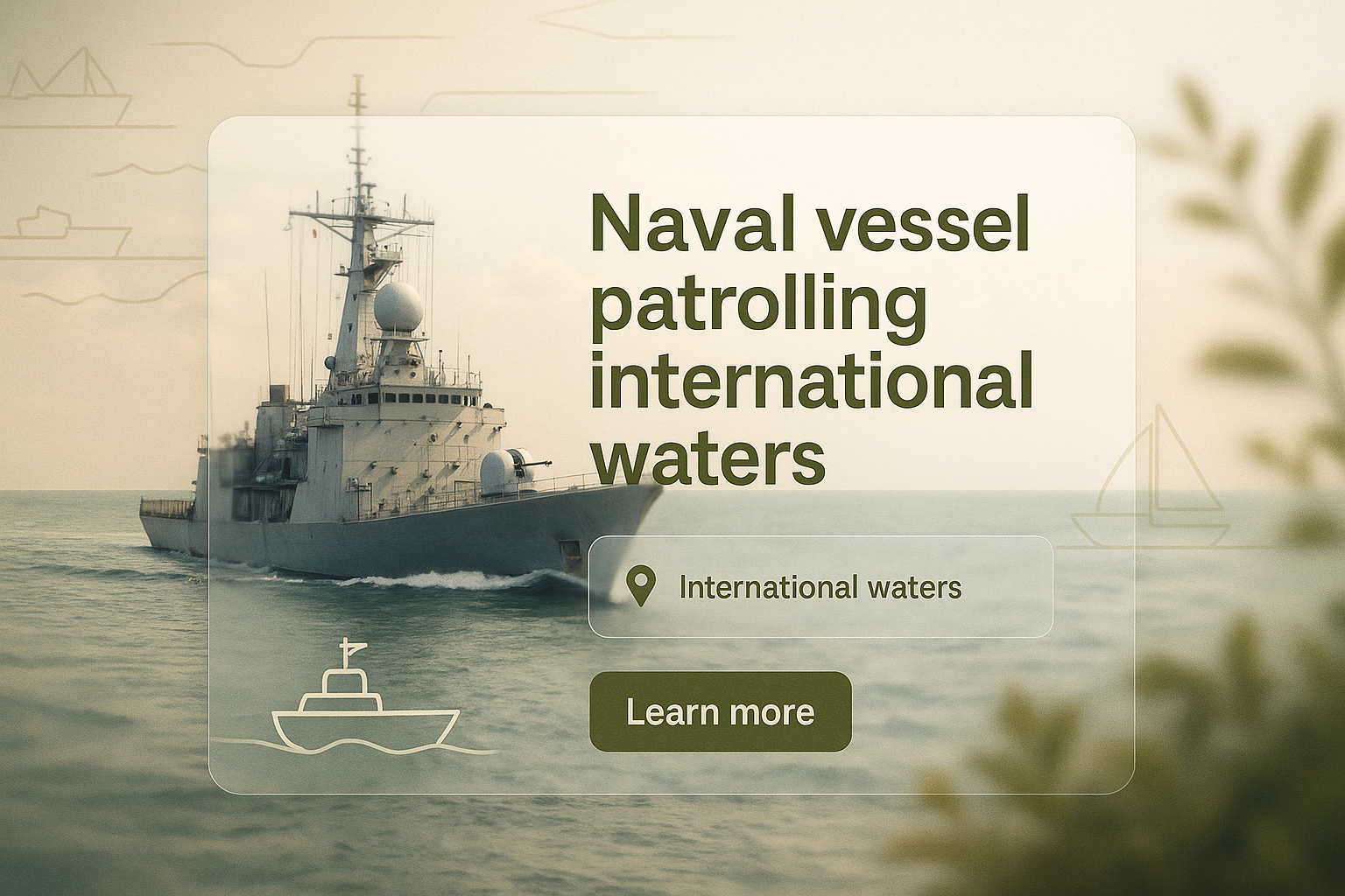 Promotional Graphic Featuring Naval Vessel in International Waters