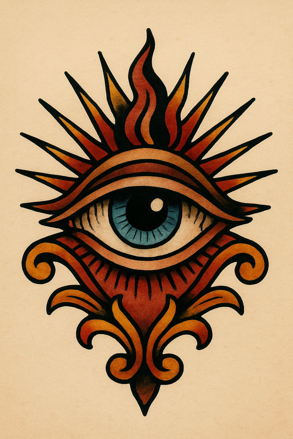 Symbolic Tattoo Design Featuring Eye, Rose, and Star