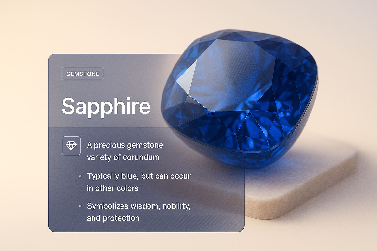 3D Illustration of Sapphire Gemstone with Informative Overlay