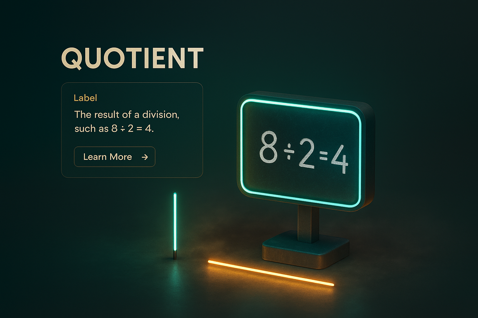 3D Neon Scene Illustrating Mathematical Quotient Concept