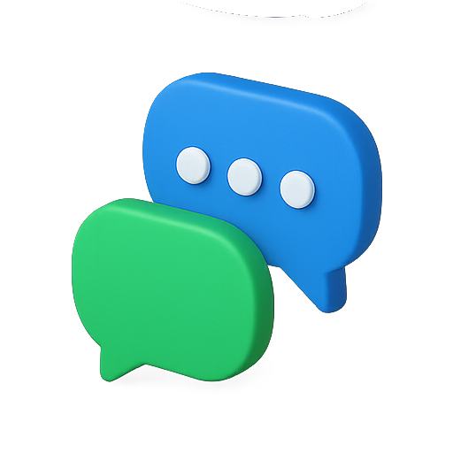 Stylized 3D icons representing messaging features, featuring vibrant speech bubbles in green and blue, suitable for app interfaces and digital communication themes.