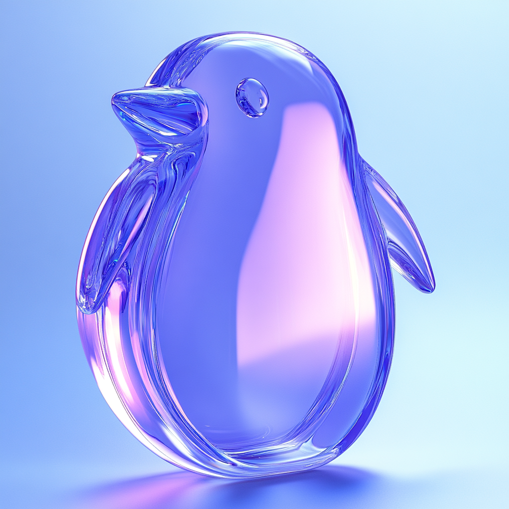 A modern and artistic glass sculpture of a penguin, showcasing smooth curves and a translucent finish. Ideal for contemporary decor and artistic displays.