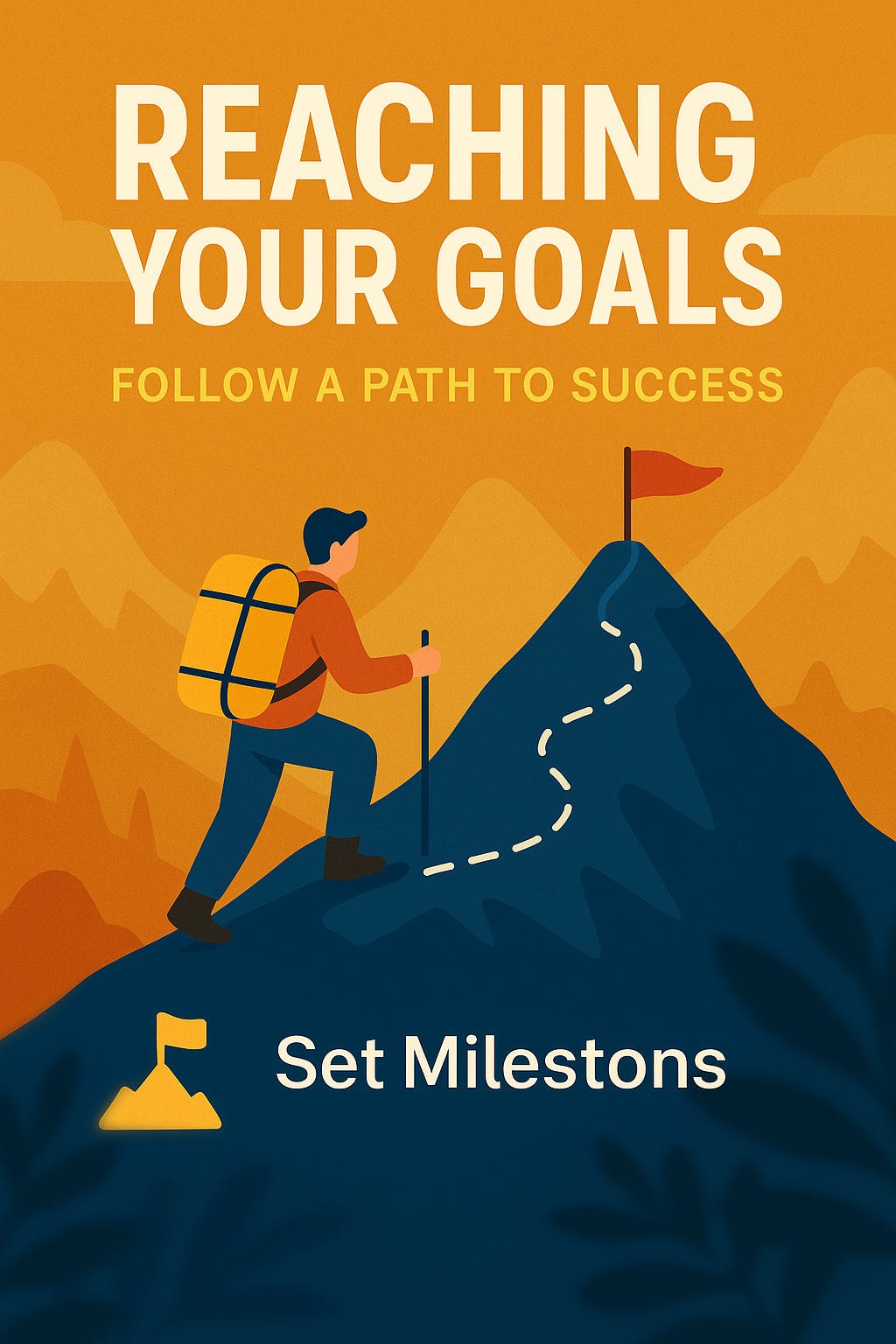 /Collection: /by davooda/Type: PNG/A vibrant illustration depicting a hiker ascending a mountain, symbolizing the journey of reaching goals. The design uses warm colors and minimalistic elements, suitable for motivational content.