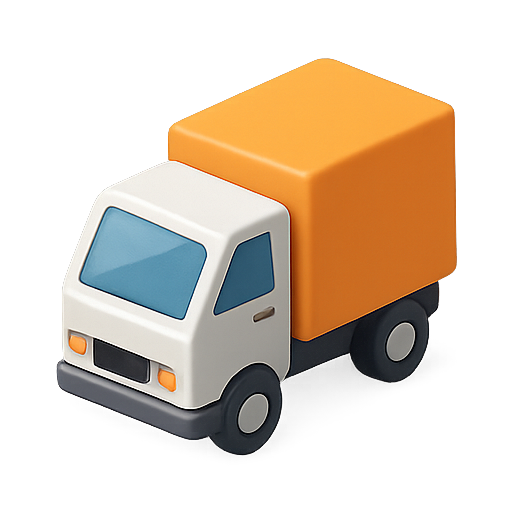 /Collection: /by davooda/Type: PNG/Stylized 3D illustration of a delivery truck featuring a bright orange cargo box and a simplistic design. Ideal for logistics, transportation, or delivery service themes.