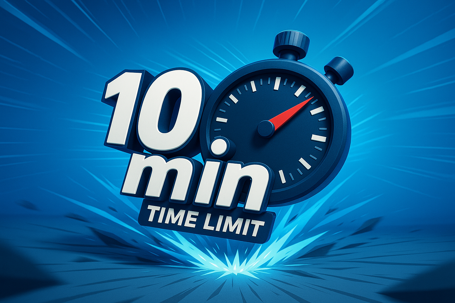This image features a stylized stopwatch with a bold '10 min TIME LIMIT' text. It uses a vibrant blue color scheme and dynamic design elements, ideal for promotional content.