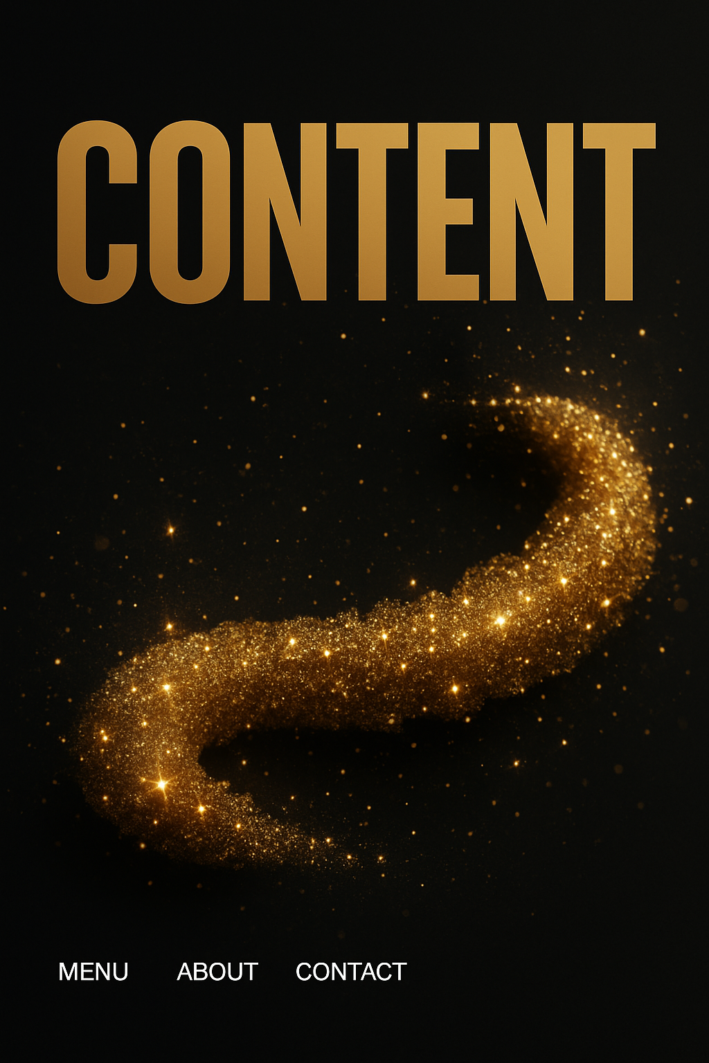 /Collection: /by davooda/Type: PNG/A striking image featuring a shimmering gold holiday garland against a dark background. The composition highlights the magical sparkle of the garland with bold typography for the word 'CONTENT' dominating the upper half.