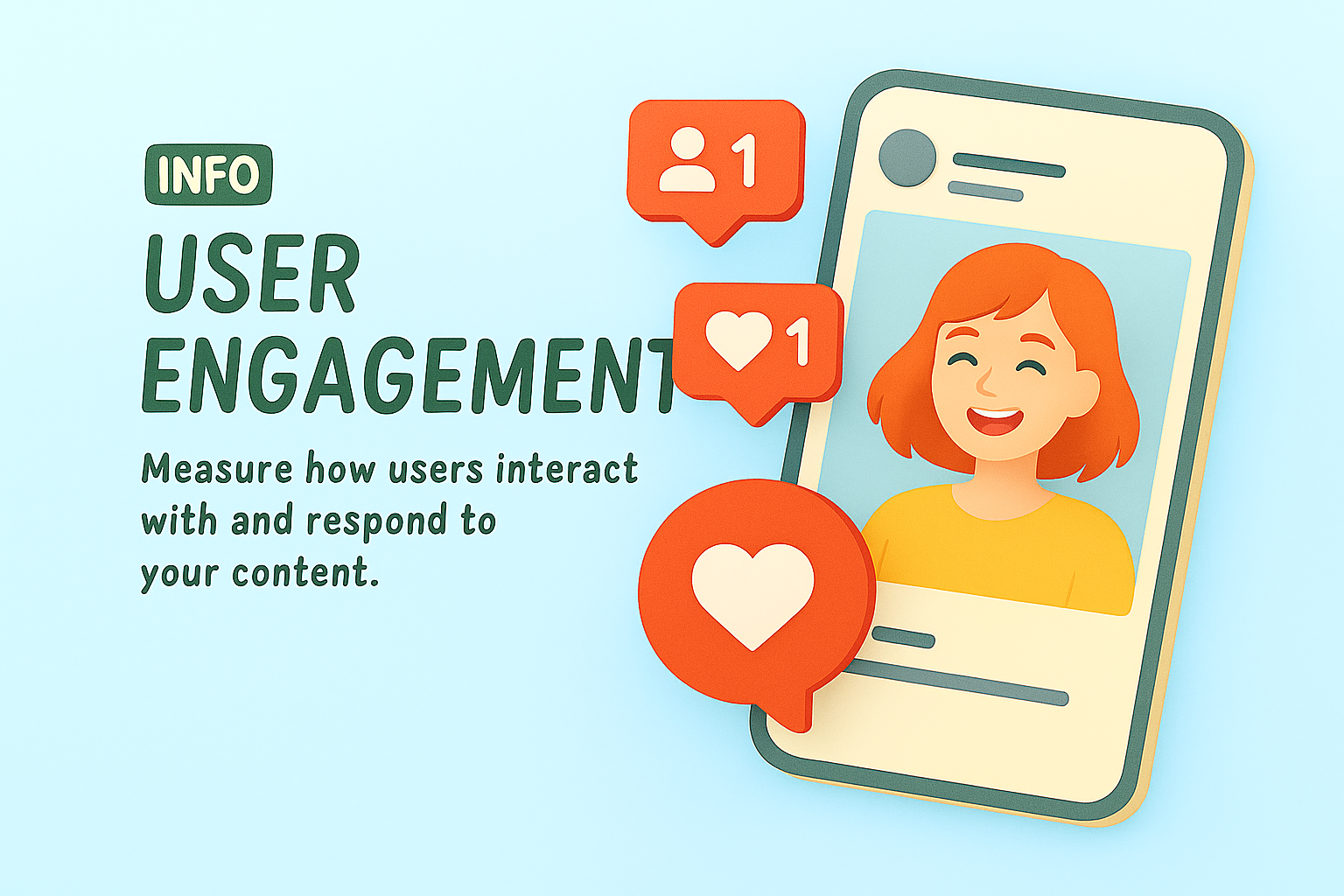 /Collection: /by davooda/Type: PNG/A visually appealing illustration depicting user engagement metrics on social media, featuring a phone and interaction icons. Ideal for digital marketing content.