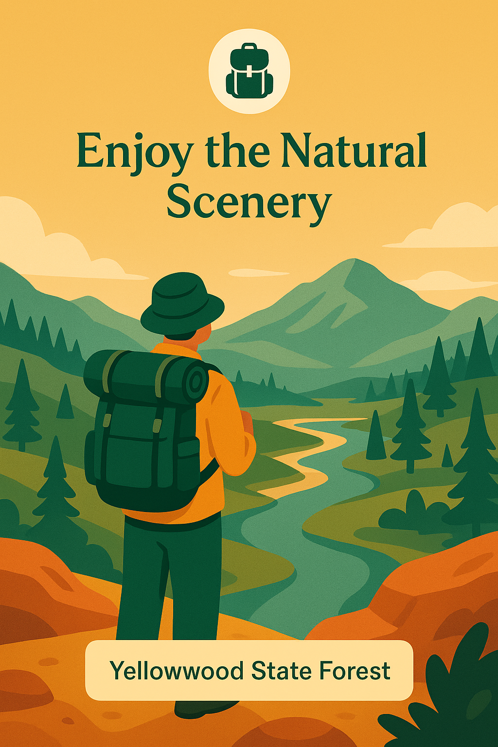 Illustrative poster showcasing a hiker in a serene natural setting, ideal for promoting outdoor adventures and tourism in state parks.
