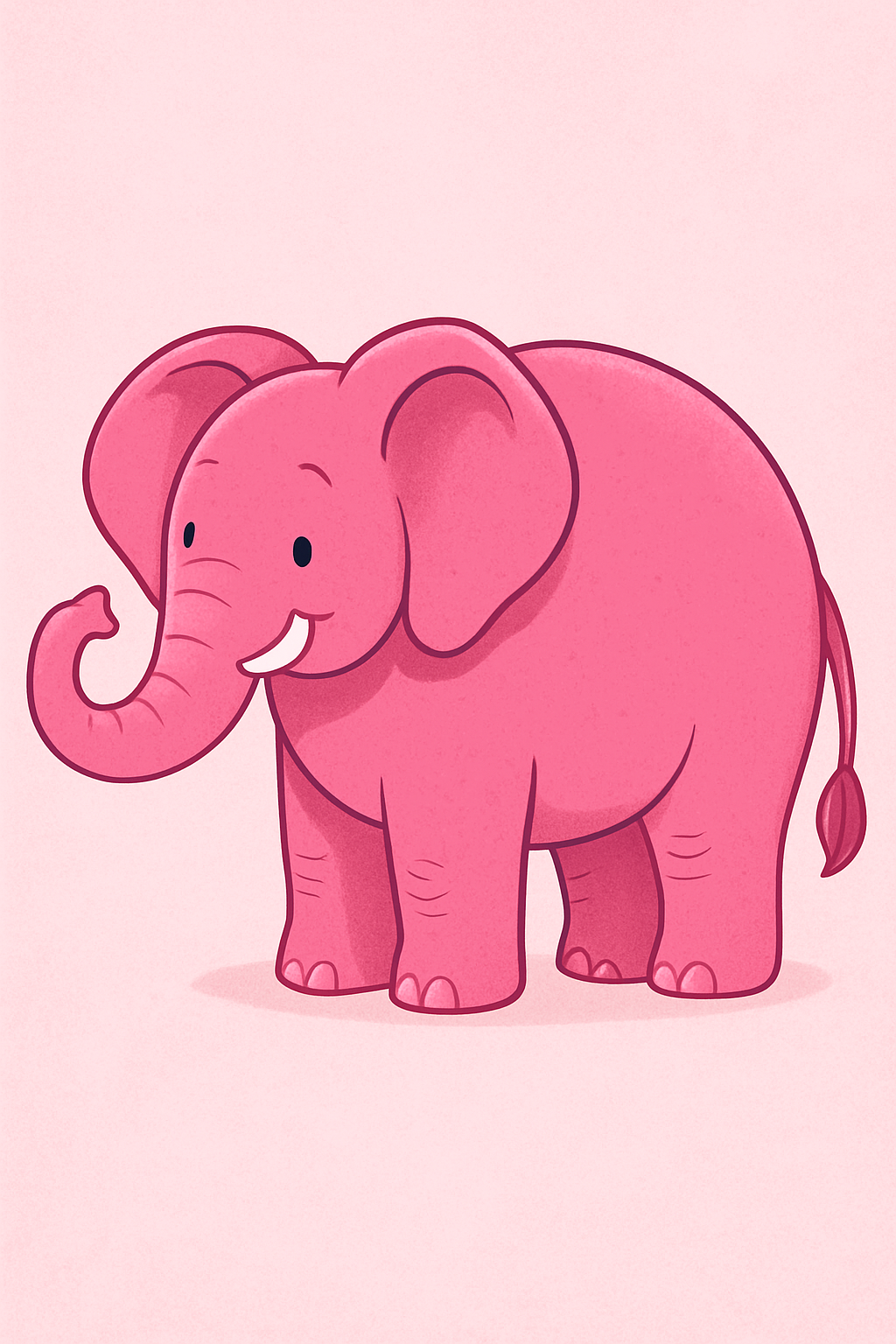 Adorable cartoon-style illustration of a pink elephant, perfect for children's products, educational materials, or playful branding. The simple design and soft colors appeal to a young audience.