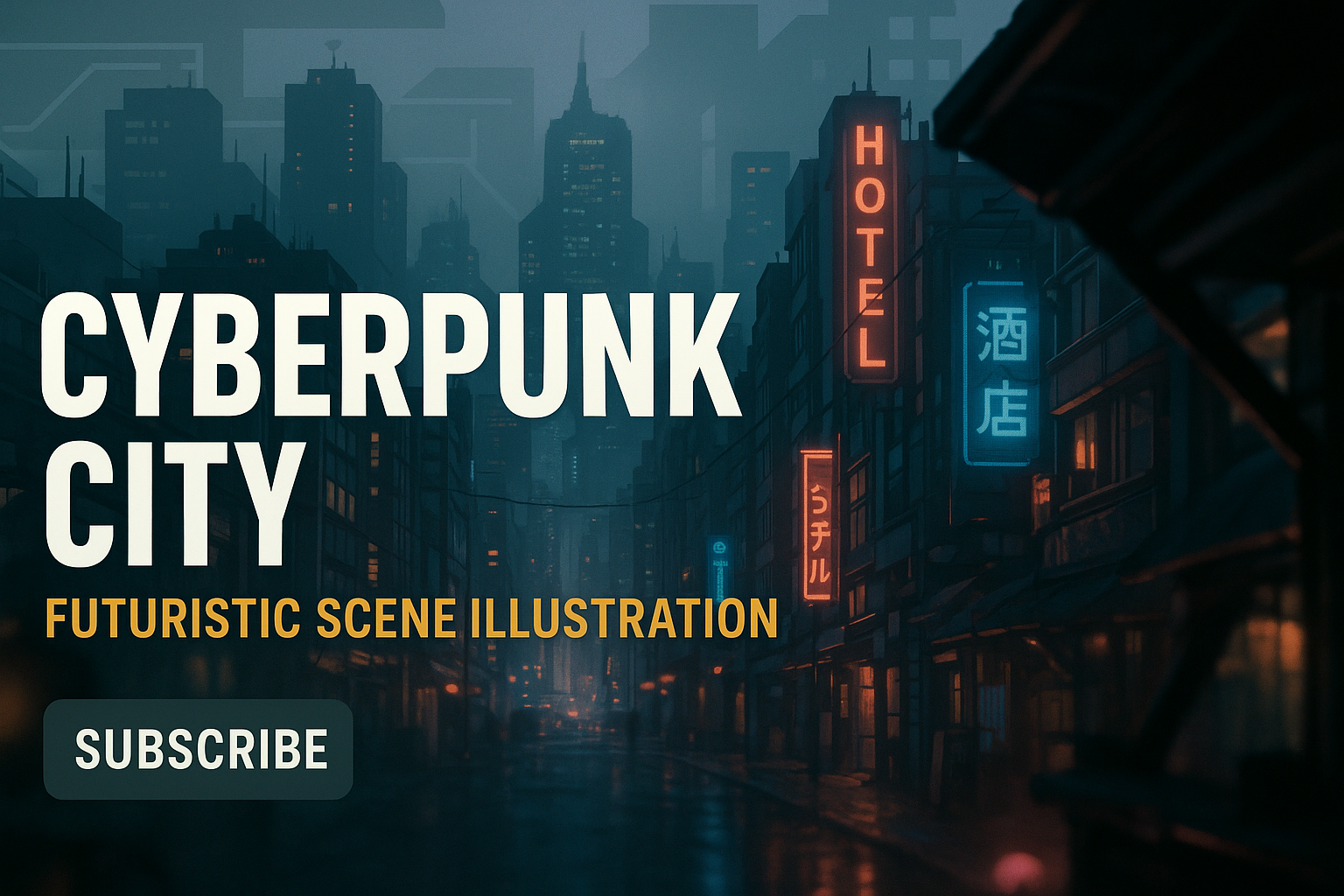 Futuristic Cyberpunk City Illustration with Neon Lights