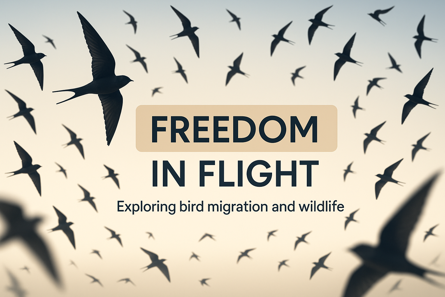 A visually striking image depicting a flock of birds in flight, symbolizing freedom and movement. Perfect for environmental awareness campaigns and wildlife exploration topics.