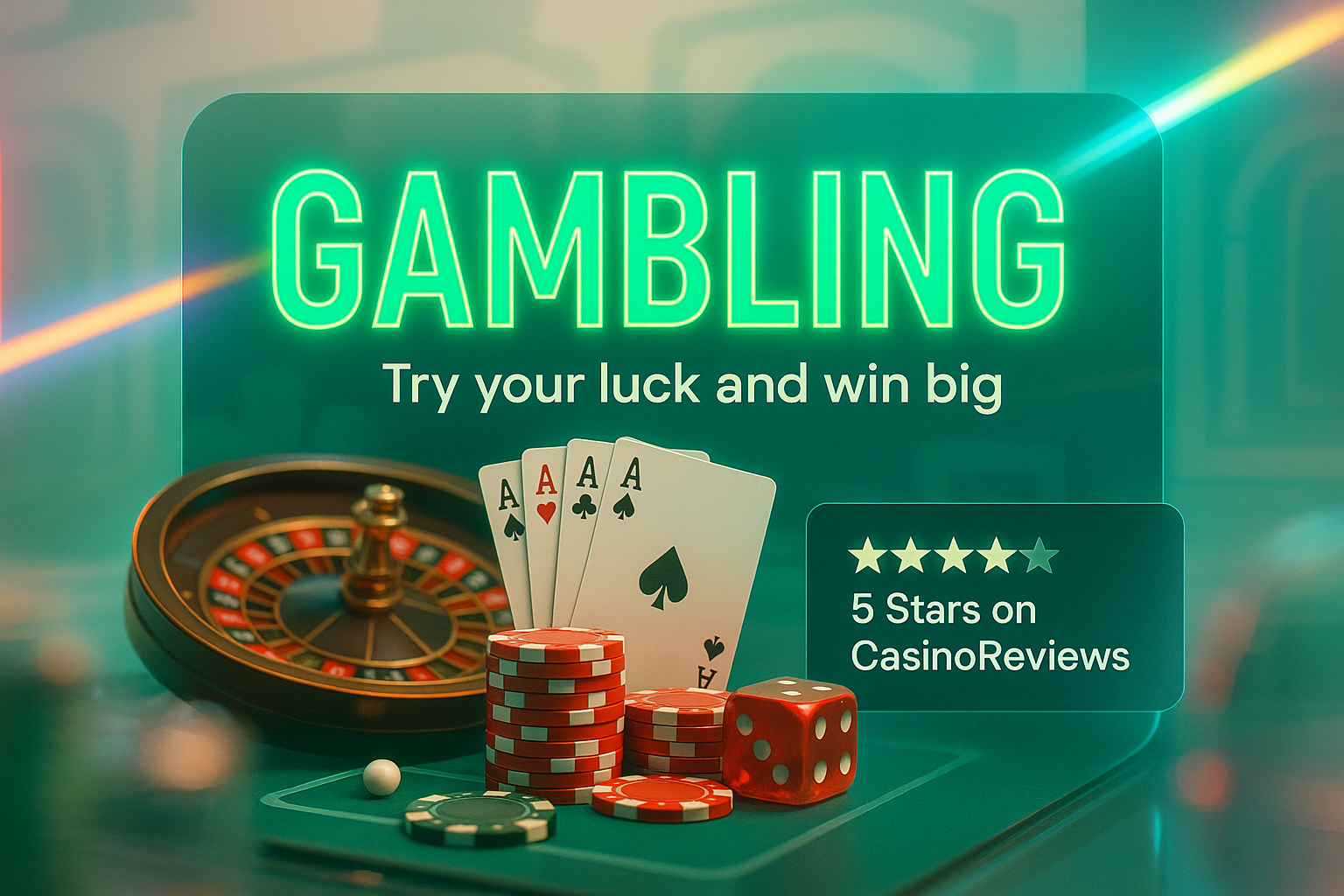 Casino Promotion Banner Featuring Gambling Theme and Game Elements