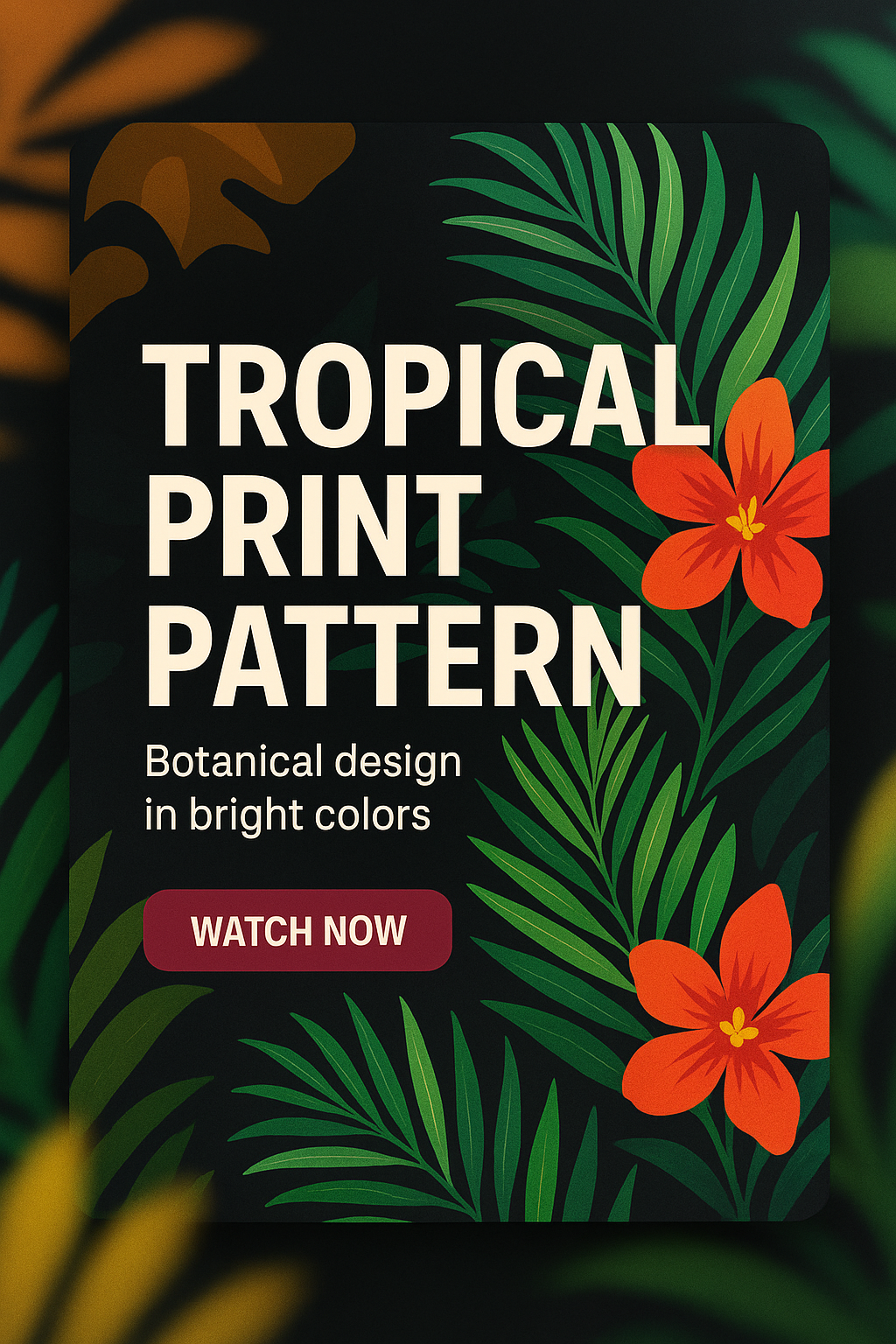 /Collection: /by davooda/Type: PNG/A visually appealing graphic featuring a tropical print pattern with lush green leaves and vibrant flowers. Ideal for nature-themed promotions or decorative purposes.