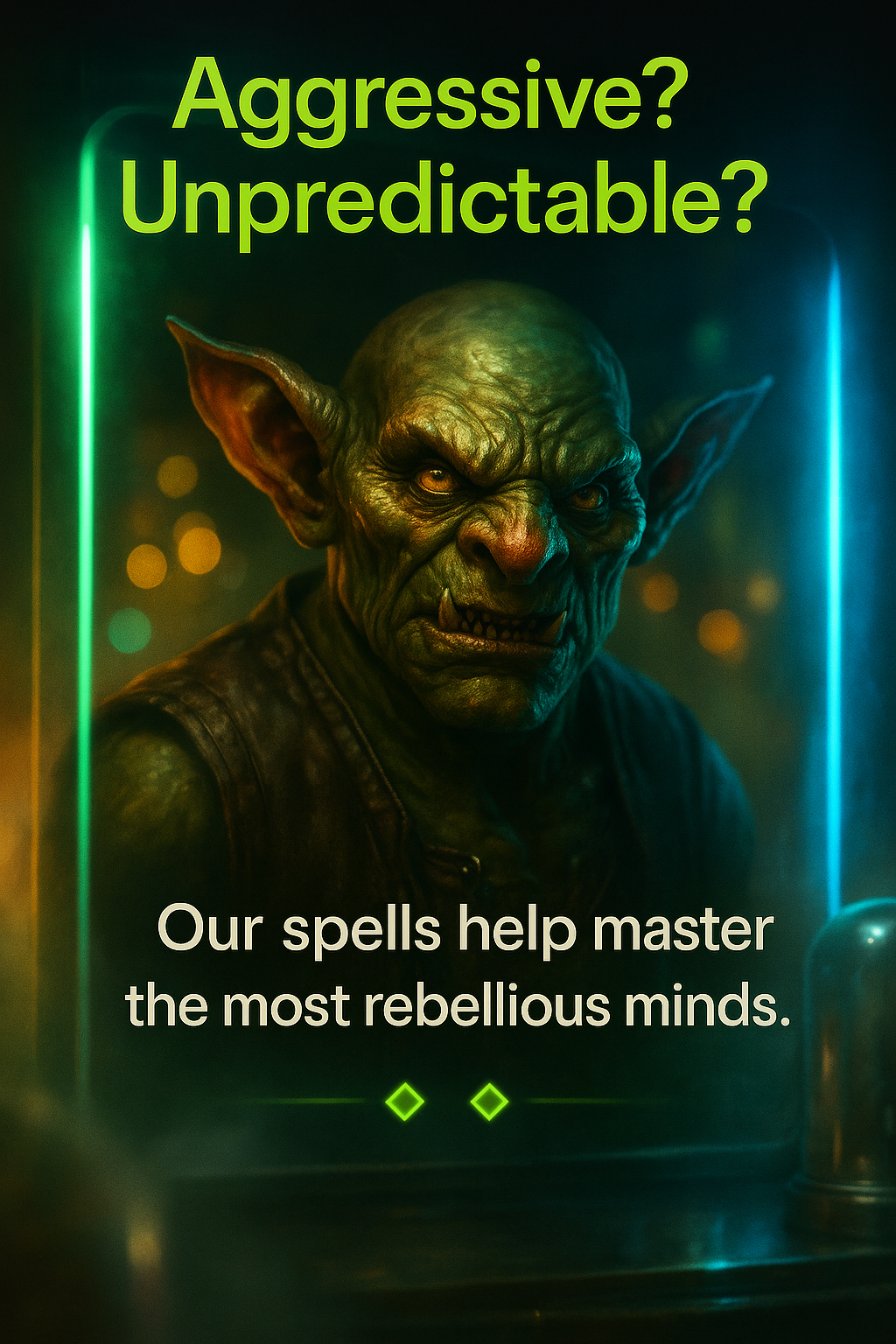 /Collection: /by davooda/Type: PNG/A striking, realistic illustration of a goblin with an intense expression, surrounded by neon accents and a blurred background, enhancing depth and focus. Engaging text highlights the theme of unpredictability.