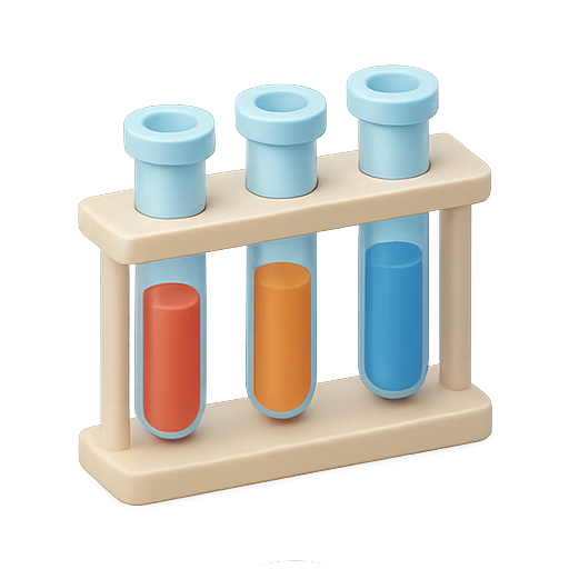 A playful representation of three test tubes in a laboratory rack, showcasing vibrant colored liquids. Ideal for educational materials or scientific themes.
