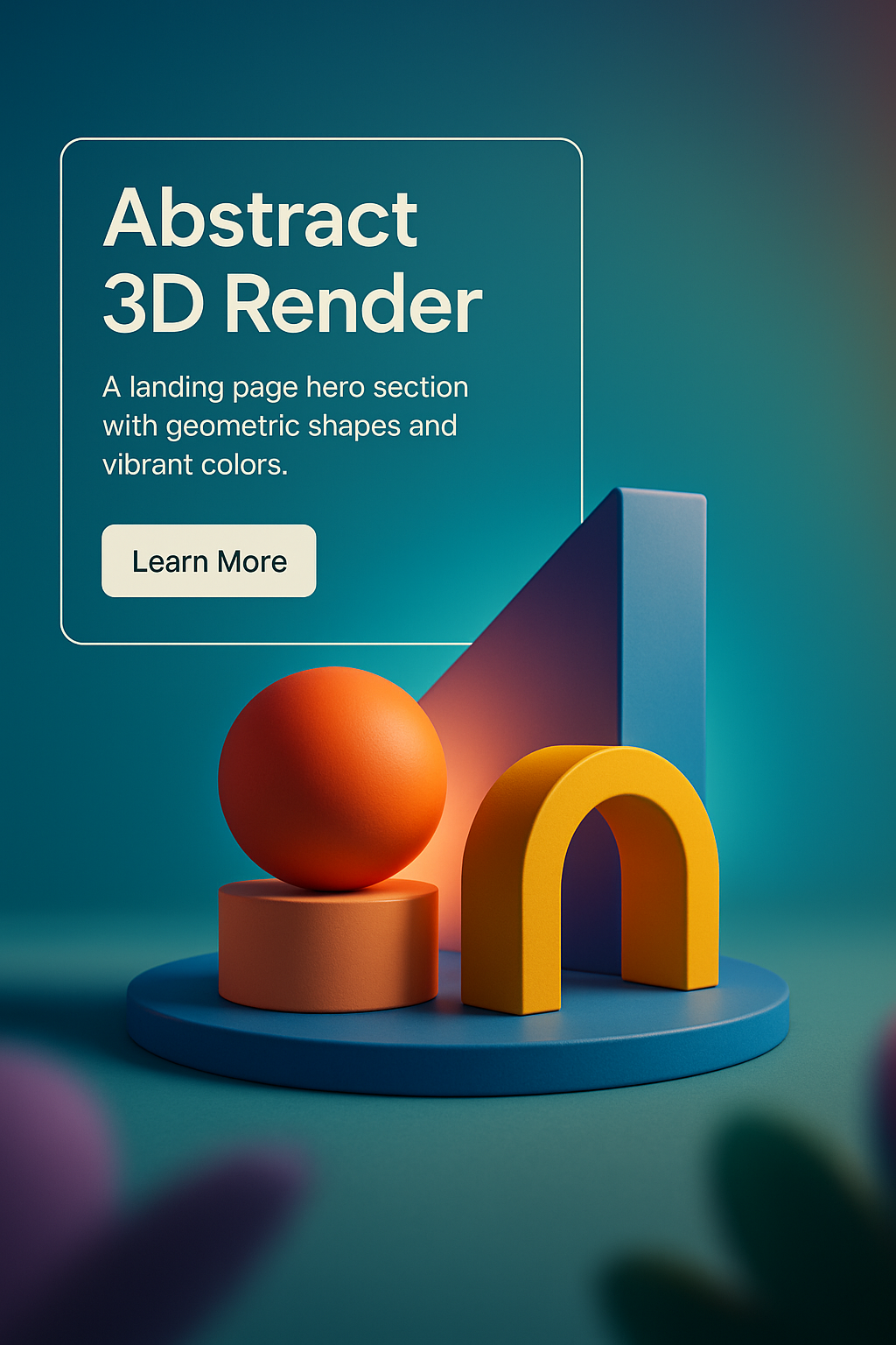 This image features a colorful abstract 3D render ideal for a landing page. It showcases geometric shapes and a modern design, appealing to digital audiences.