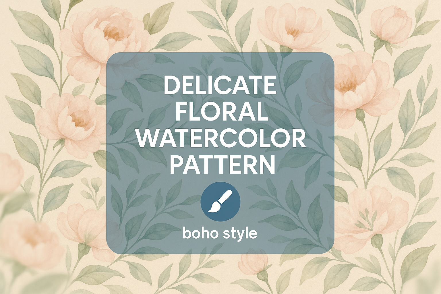 A soft and elegant watercolor floral pattern featuring delicate flowers and leaves, ideal for boho-themed designs, textiles, and stationery.