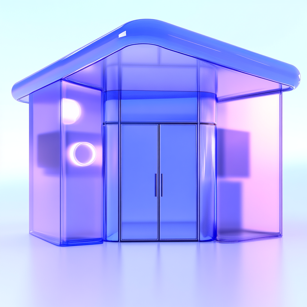 A futuristic rendering of a translucent house design featuring a sleek, blue color palette. Ideal for architectural showcases and design inspiration.
