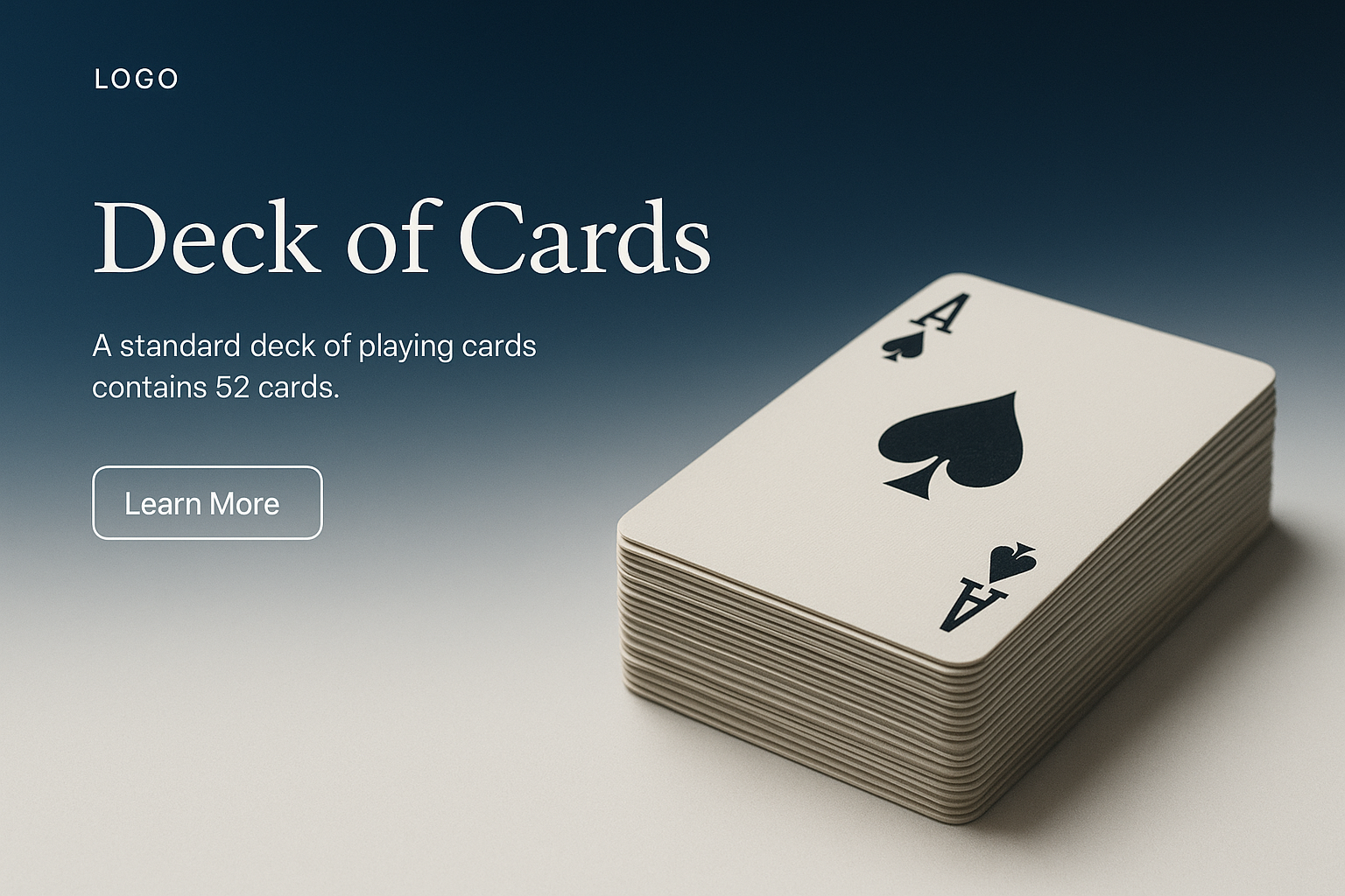 An elegant deck of playing cards featuring the Ace of Spades, displayed against a gradient background. Perfect for web design use.