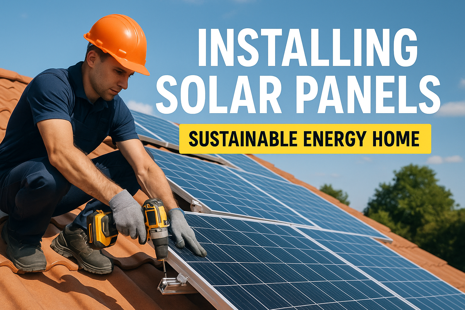 Man Installing Solar Panels on Rooftop for Sustainable Energy