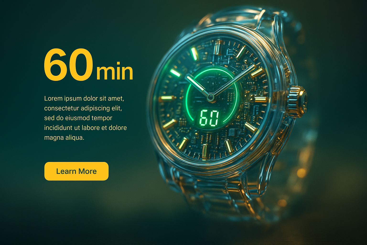 Hyperrealistic 60 Min Timepiece with Neon Accents and Glass Aesthetics