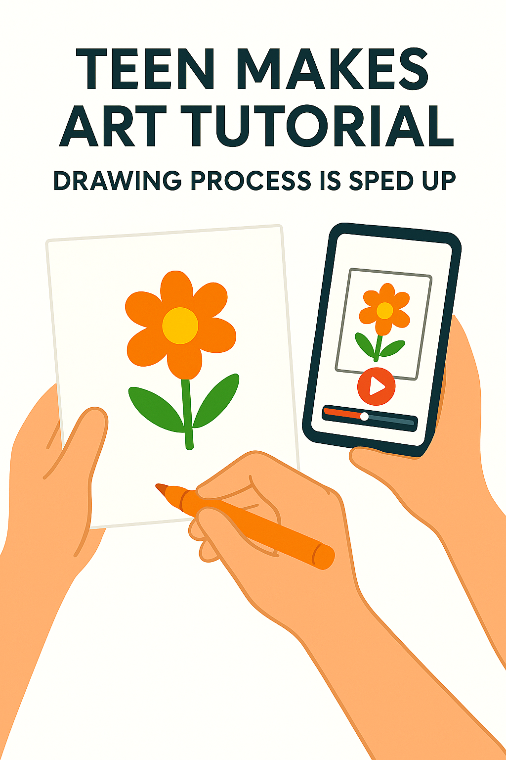 Art Tutorial Graphic Featuring Hands Drawing a Flower