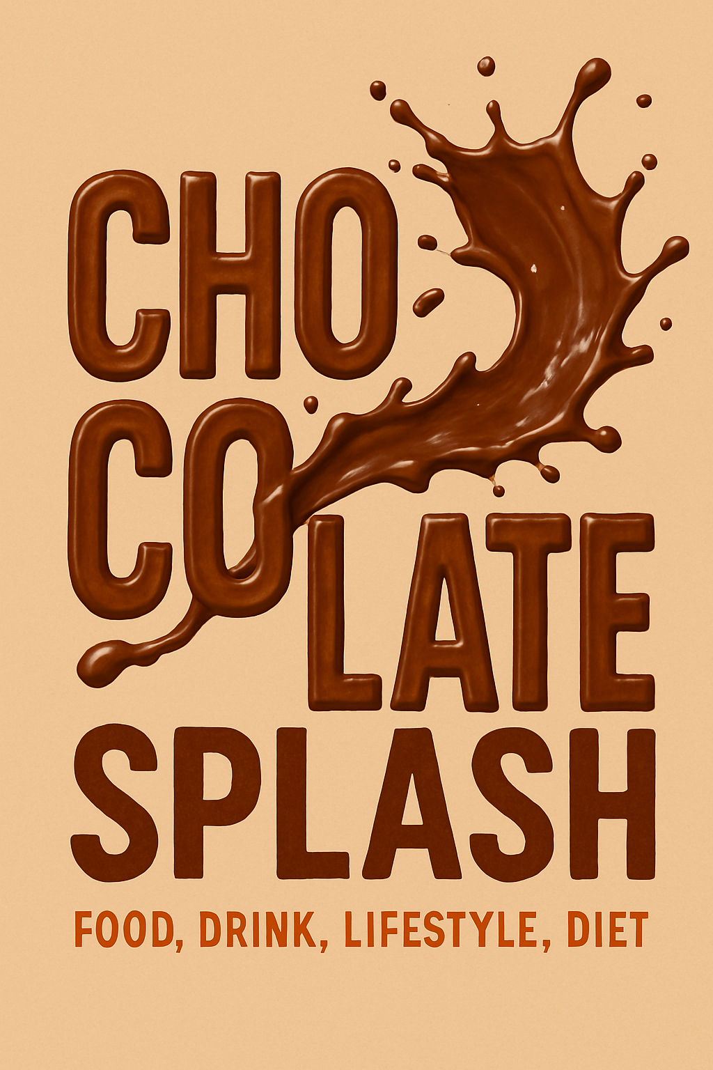 Stylish graphic featuring a chocolate splash with bold typography, ideal for food and beverage marketing or lifestyle branding.