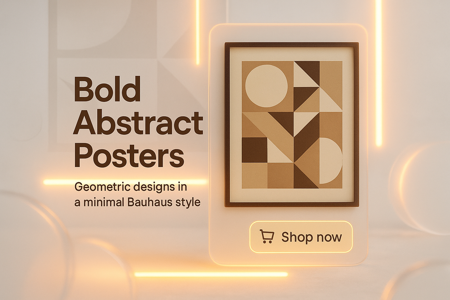 Stylish promotional image featuring bold abstract posters in the Bauhaus style, designed for online retail marketing. Perfect for art enthusiasts and home decor.