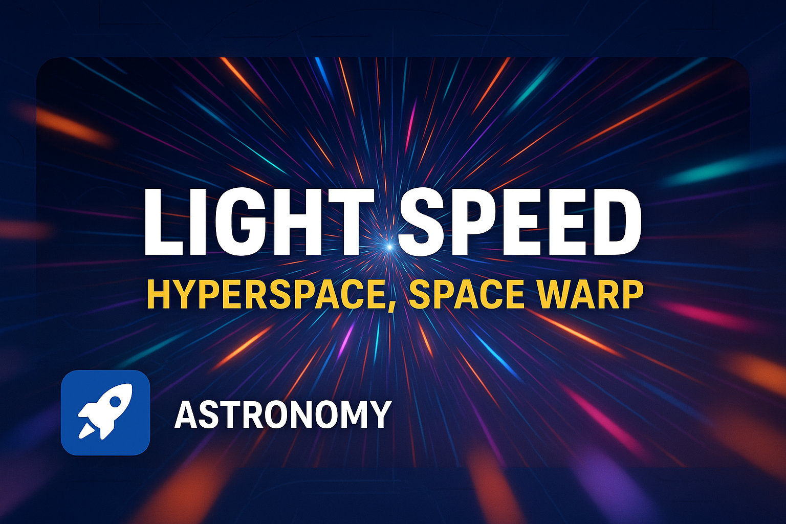 Vibrant graphic showcasing the concept of light speed with a space warp effect, ideal for educational content in astronomy and science communication.