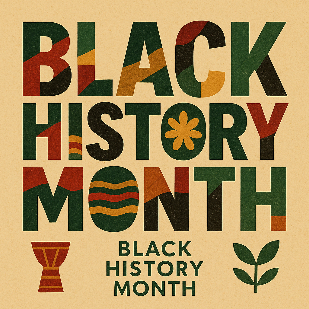 Vibrant graphic celebrating Black History Month, featuring bold typography and a colorful design. Ideal for educational or cultural events.