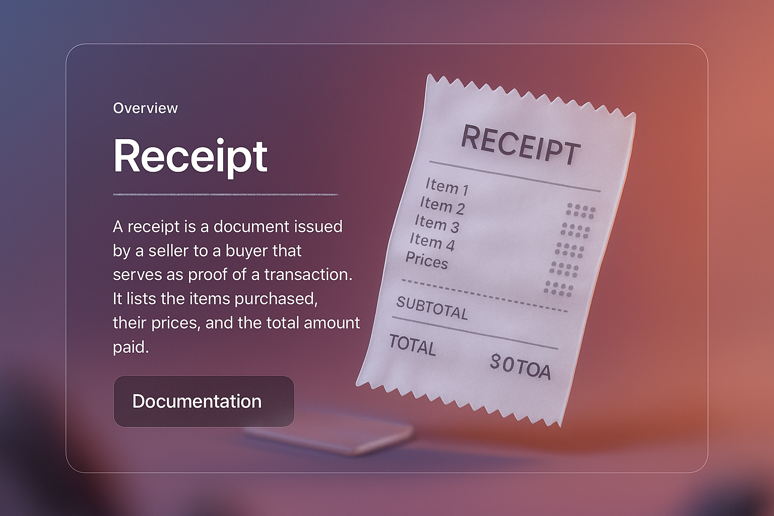 /Collection: /by davooda/Type: PNG/A visually appealing 3D illustration of a receipt, featuring a gradient background and transparent overlay elements. The design includes itemized details and a modern aesthetic.