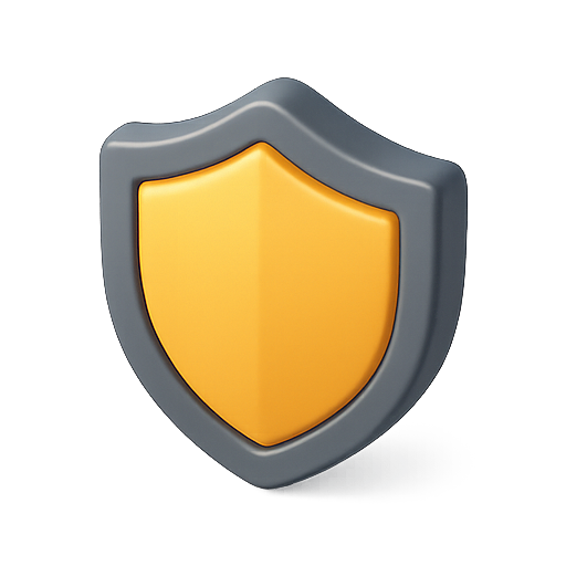 3D stylized shield icon with a yellow center and gray border, symbolizing protection and security. Ideal for digital security, safety, and protection themes.