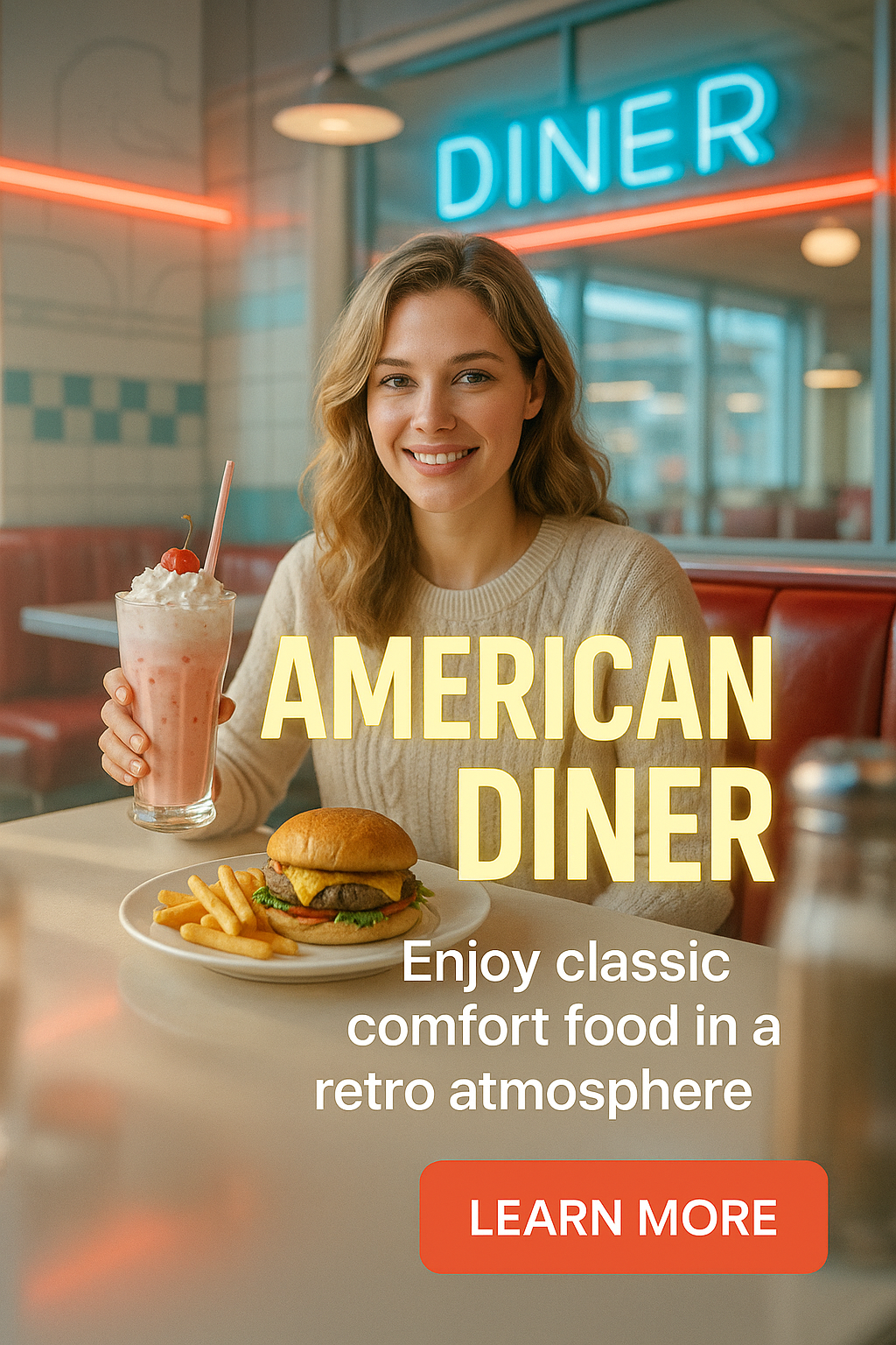 Charming American Diner Promotion with Retro Vibes