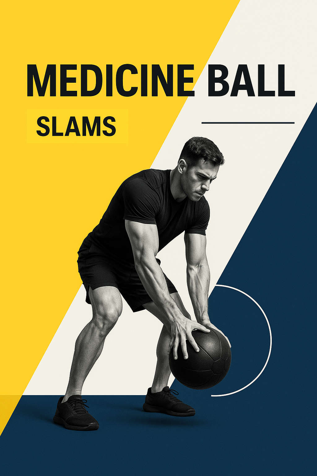 /Collection: /by davooda/Type: PNG/A male athlete performs medicine ball slams in a dynamic, minimalist setting. The image features a clean layout with three distinct color blocks, emphasizing energy and control.