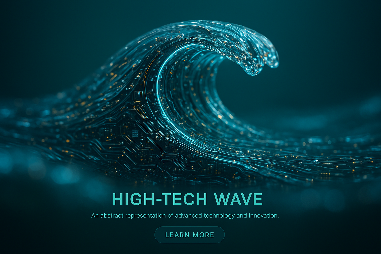 /Collection: /by davooda/Type: PNG/This image features an abstract representation of a high-tech wave, intricately designed with glowing micro-LEDs and metallic components. The deep blues and neon accents create a mesmerizing aquatic feel.