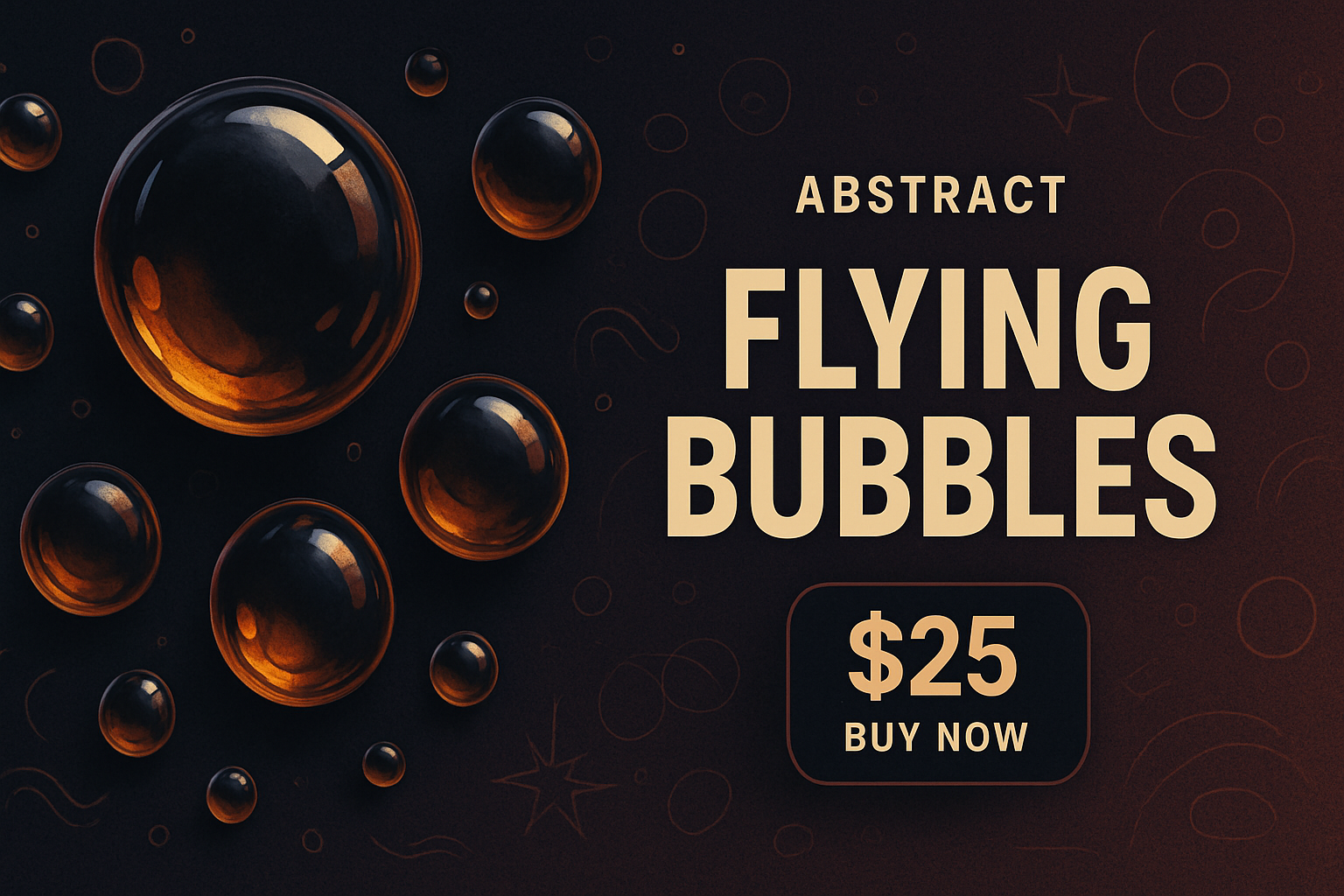 An abstract desktop wallpaper featuring flying bubbles on a colorful background. The design includes bold typography and a clean layout, enhancing visual appeal.