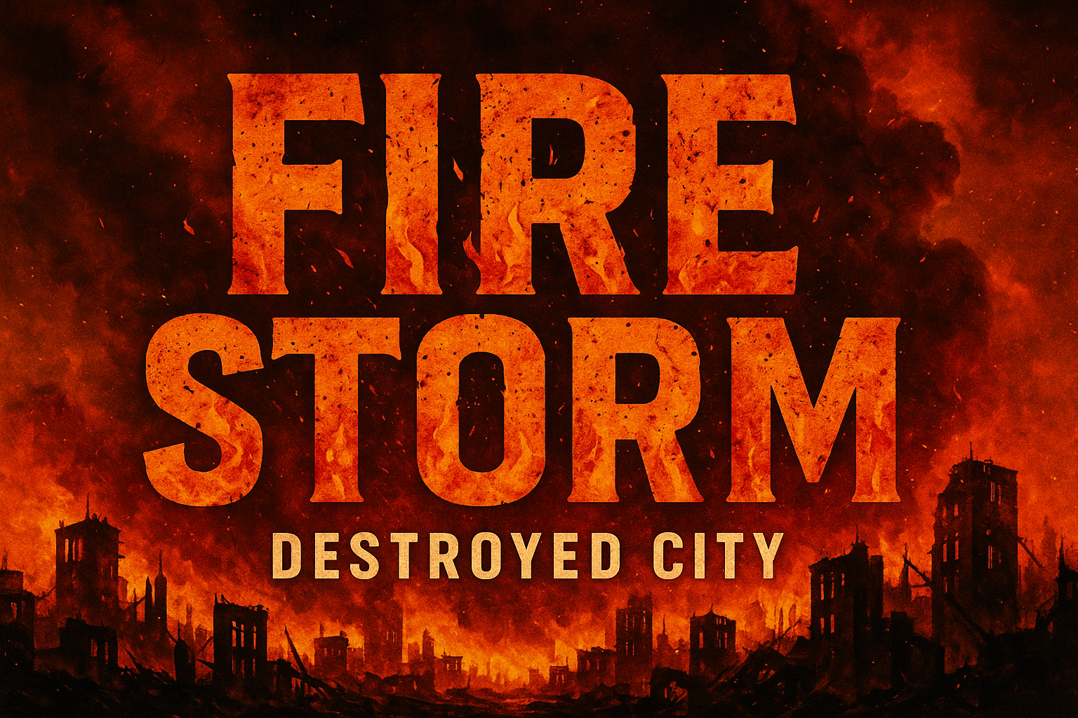 Dramatic Poster for Fire Storm Theme with Destroyed City