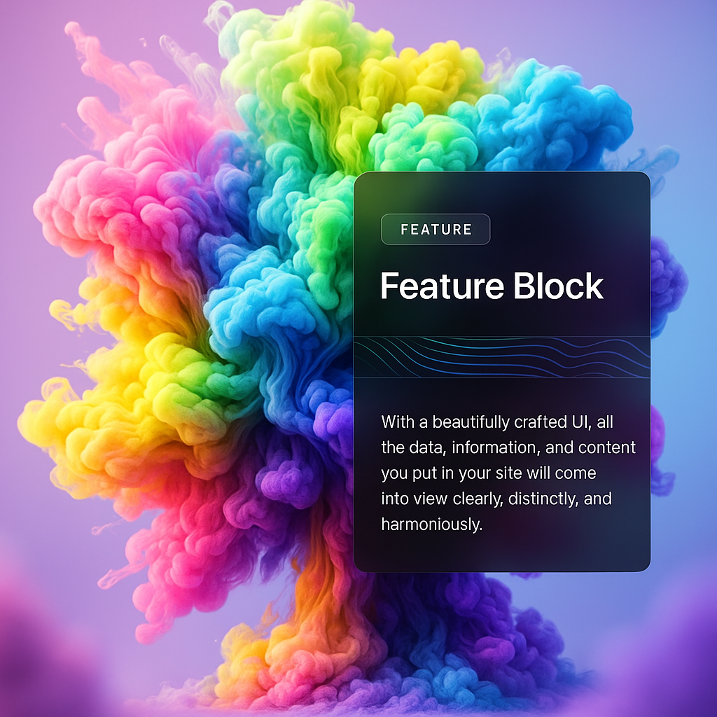 /Collection: /by davooda/Type: PNG/An abstract 3D rendering featuring vibrant, multicolored neon smoke resembling a burst of Holi paint. A sleek feature block integrates seamlessly into the design.