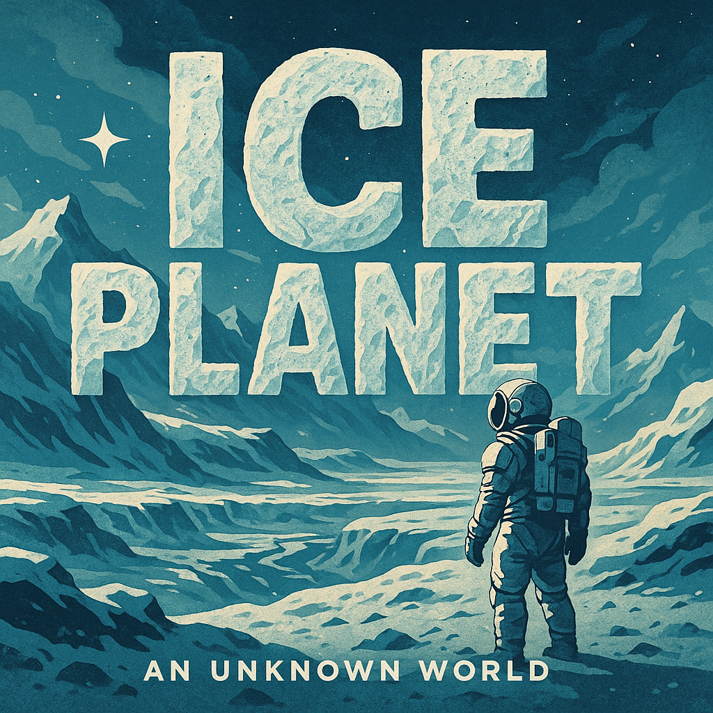A captivating sci-fi illustration depicting an astronaut on an icy planet, showcasing a surreal landscape with bold typography. Ideal for book covers or promotional materials in the sci-fi genre.
