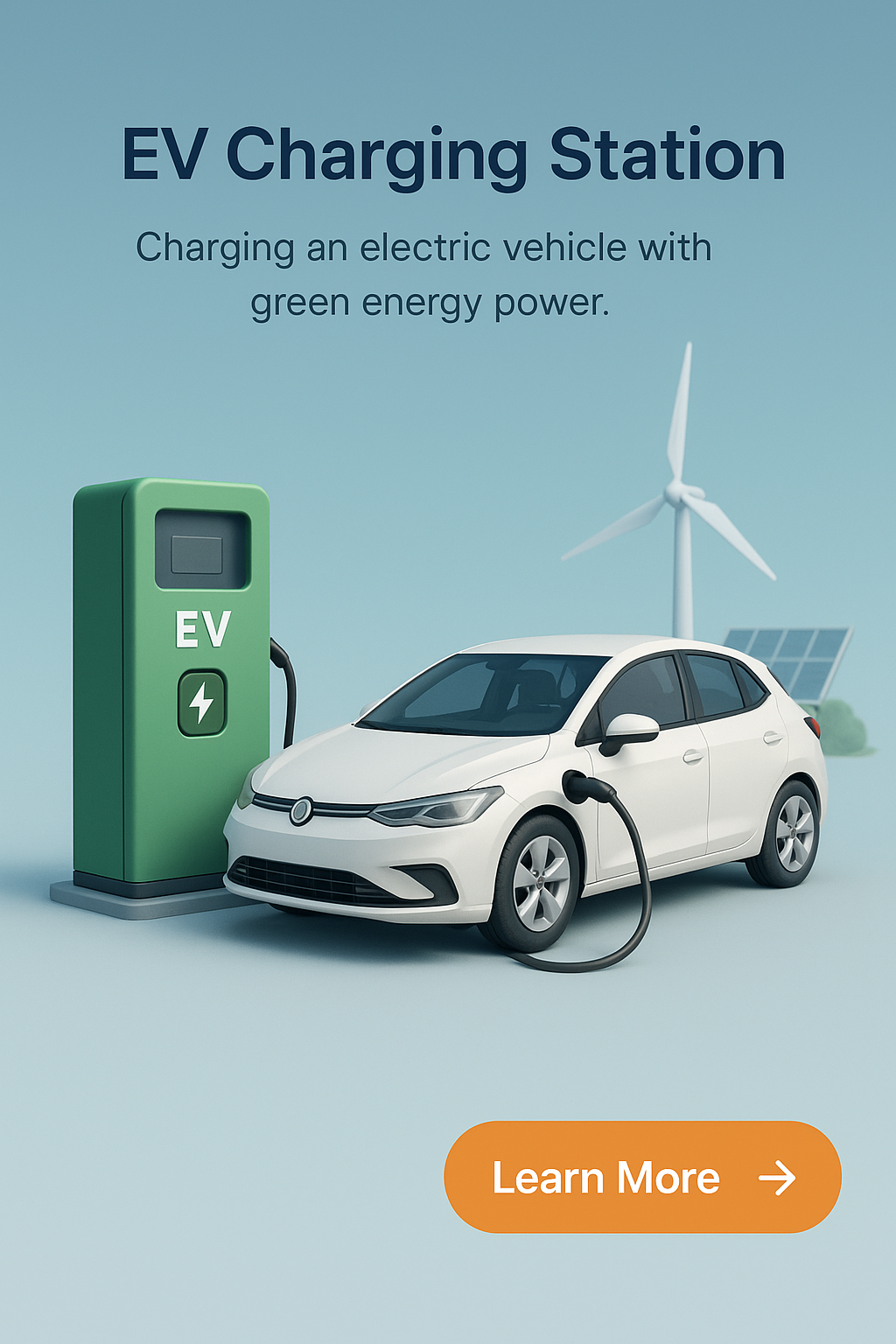 Detailed 3D Illustration of EV Charging Station with Green Energy Elements