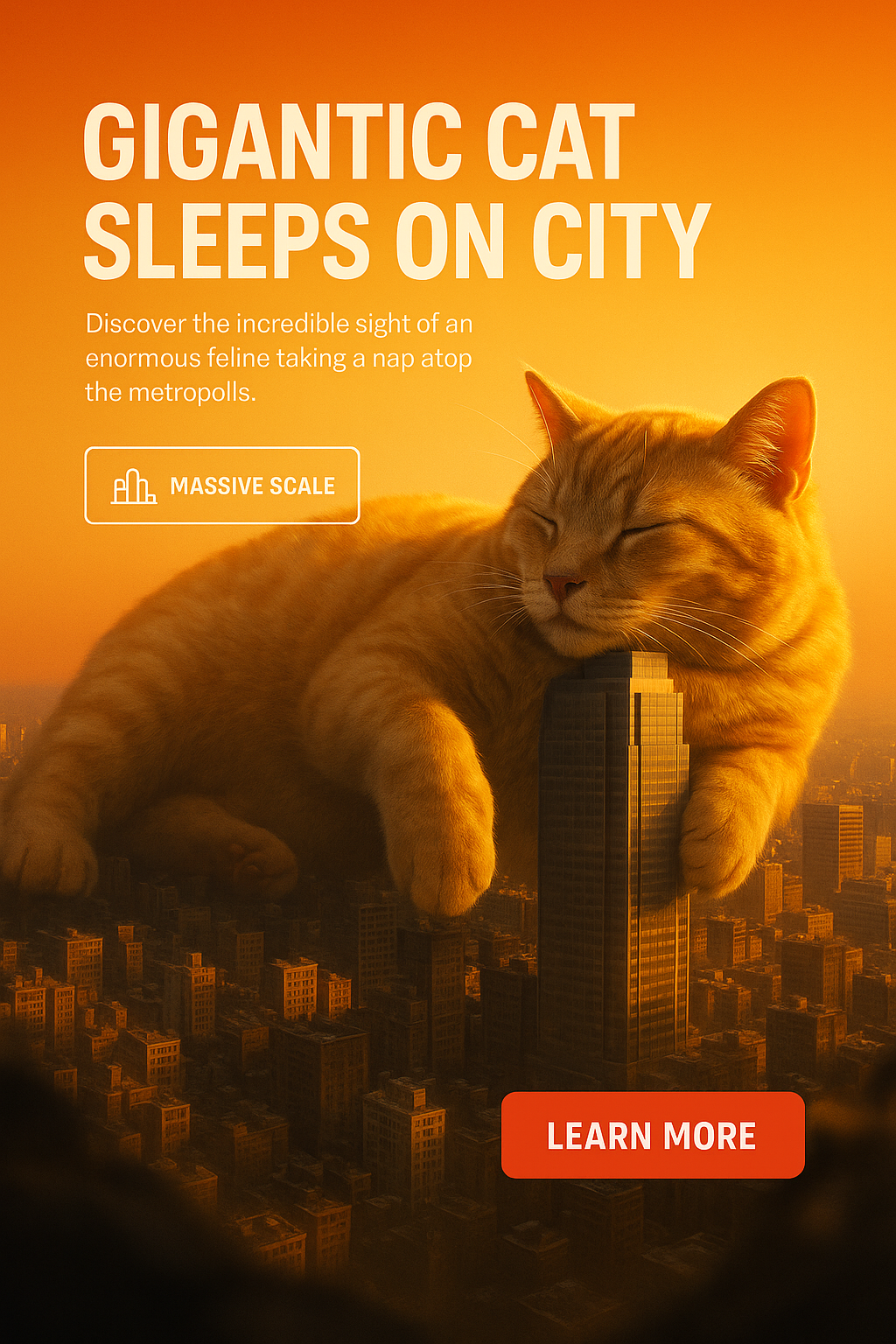 /Collection: /by davooda/Type: PNG/A vibrant and imaginative graphic showcasing a giant cat sleeping over a city skyline. This visually striking social media post appeals to cat lovers and urban fantasy fans.
