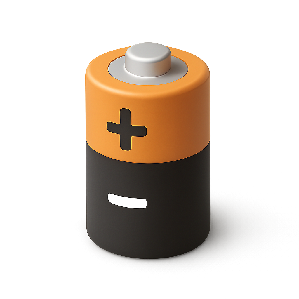 3D Alkaline Battery Icon in Volumetric Style
