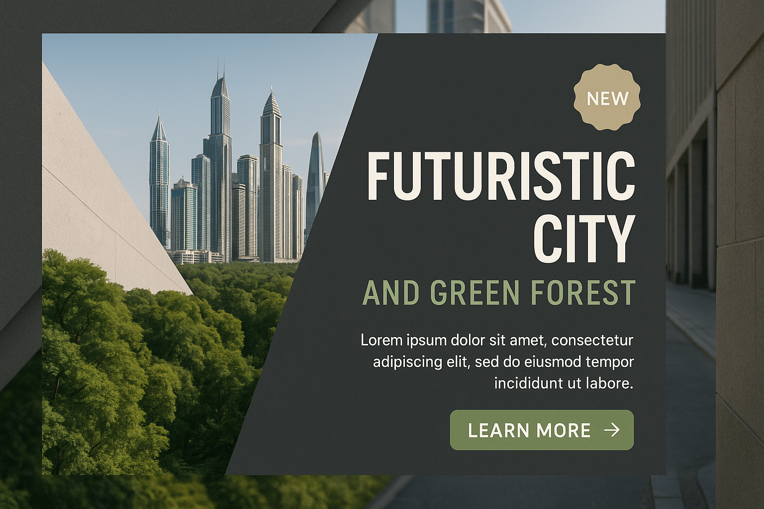 /Collection: /by davooda/Type: PNG/A visually striking depiction of a futuristic city featuring towering skyscrapers set against a backdrop of a vibrant green forest, emphasizing a blend of urban and natural elements.