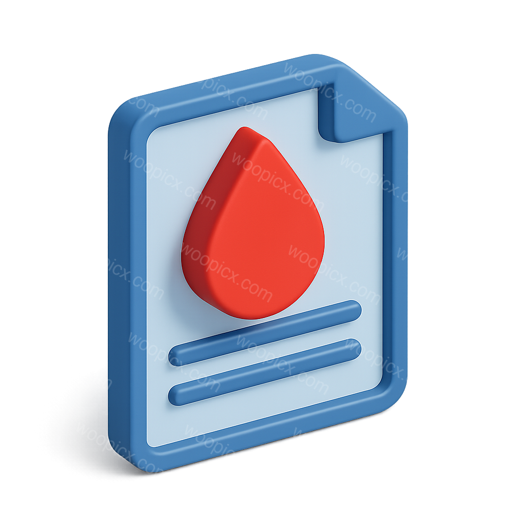 /Premium/Collection: /by davooda/Type: PNG/A three-dimensional icon illustrating a blood droplet on a document style background. The design features a bright red droplet and a blue frame with a subtle shadow for depth.
