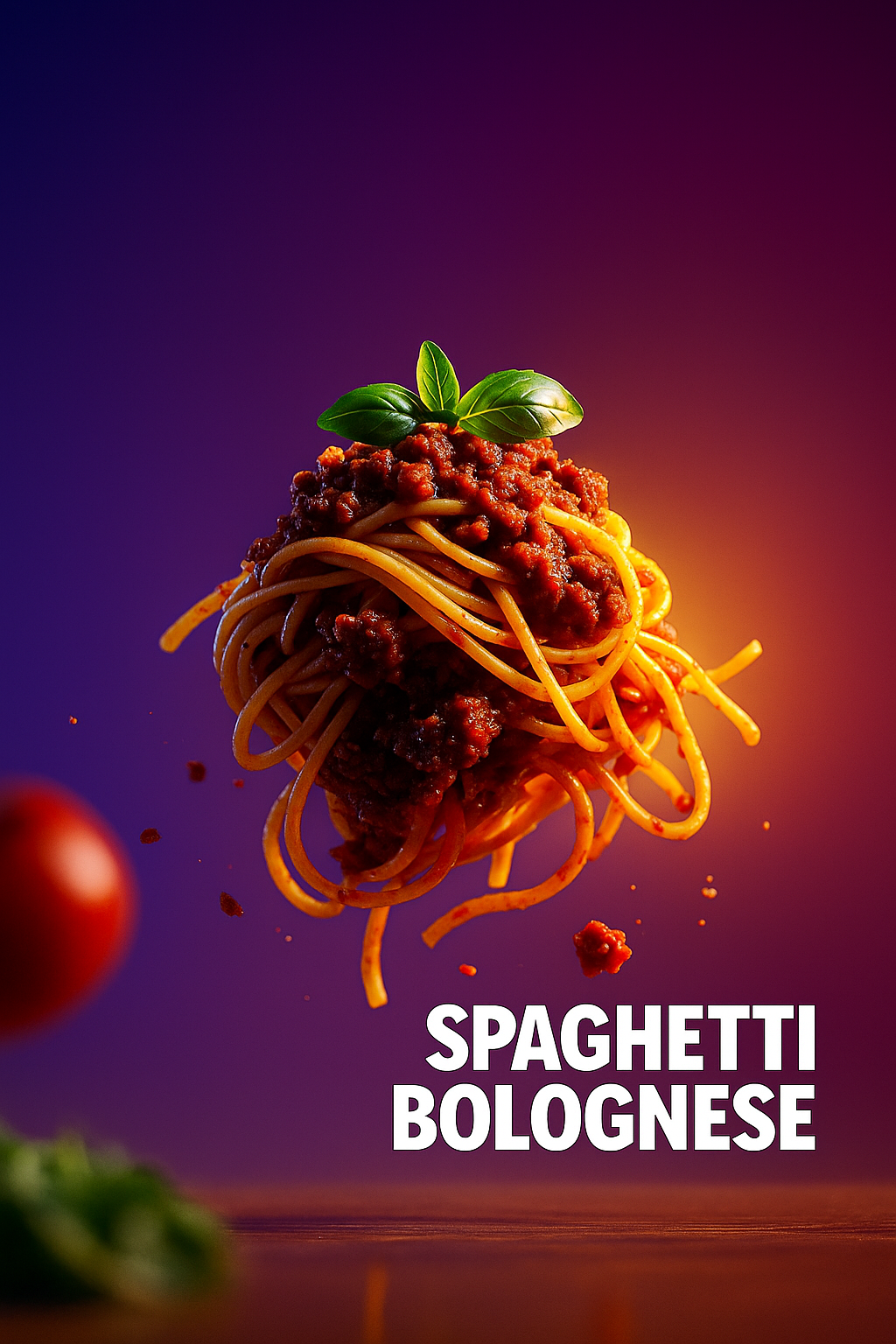 Dynamic Spaghetti Bolognese Presentation in Realistic Style