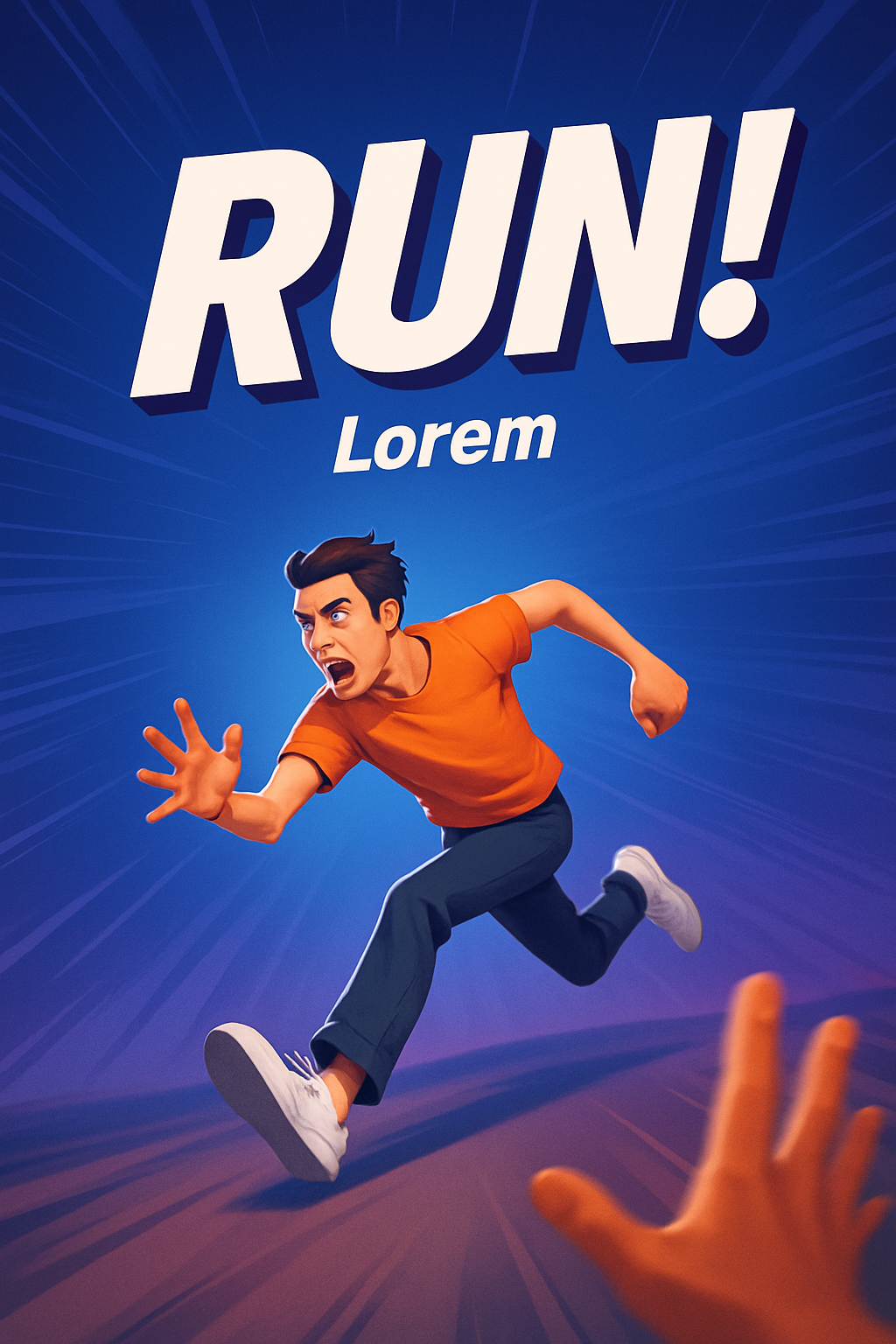 /Collection: /by davooda/Type: PNG/A vibrant graphic featuring a stylized character running energetically. The design uses bold colors and dynamic lines to convey movement, suitable for promotional material or gaming content.