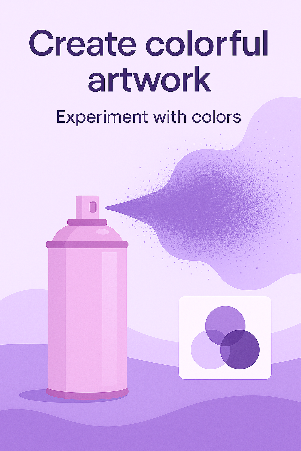 /Collection: /by davooda/Type: PNG/Vibrant graphic showcasing a spray paint can and color mixing elements, designed to inspire creativity in art projects. Ideal for art tutorials and creative workshops.