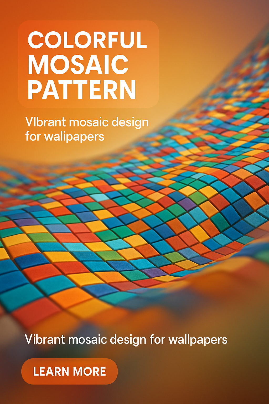 This image features a vibrant mosaic pattern suitable for wallpapers, showcasing bright colors and dynamic shapes. Ideal for design enthusiasts and interior decorators.