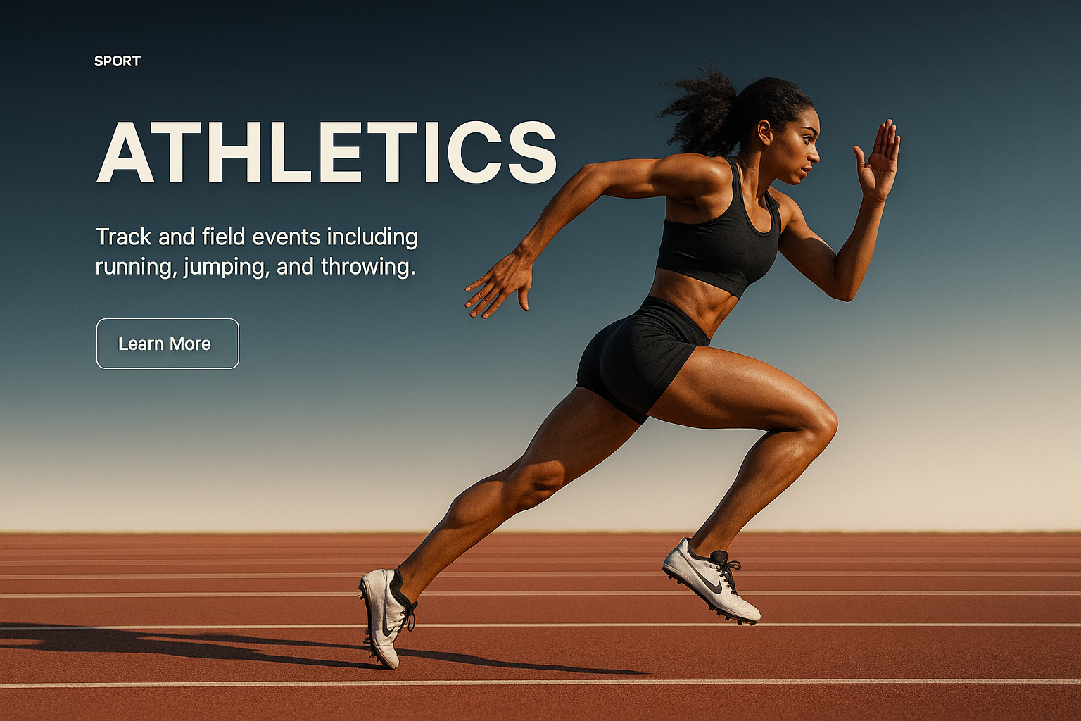 /Collection: /by davooda/Type: PNG/A stylish web page design focused on athletics, featuring a sprinter in motion. The layout includes a gradient background, bold text, a brief description, and a call-to-action button.